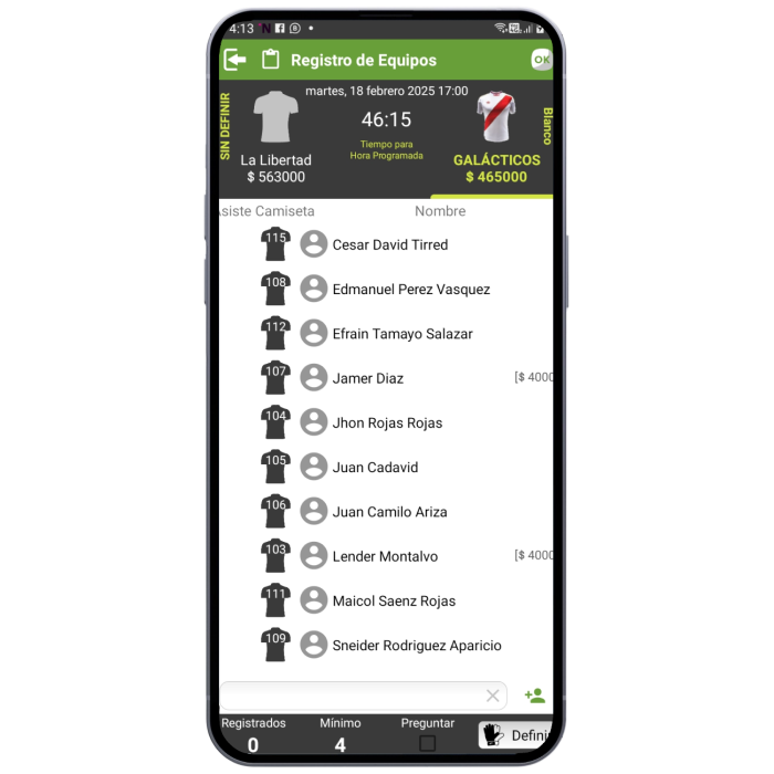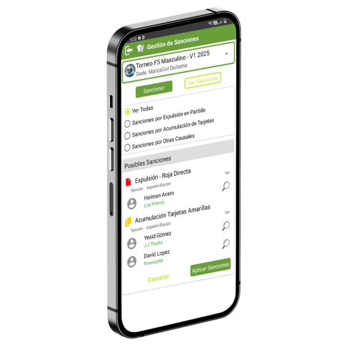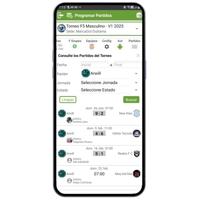 Con este registro sencillo, MarcaGol actualizará automaticamente y al instante toda la información del torneo