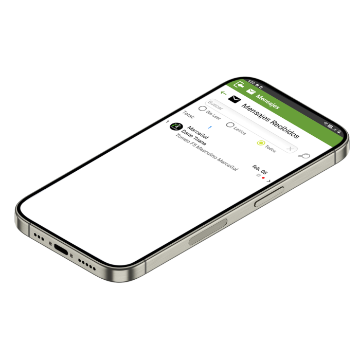 Como todos los usuarios de MarcaGol, tendrán una bandeja de entrada en la cual recibirán y podrán consultar todos los mensajes que reciban, permitiendo: